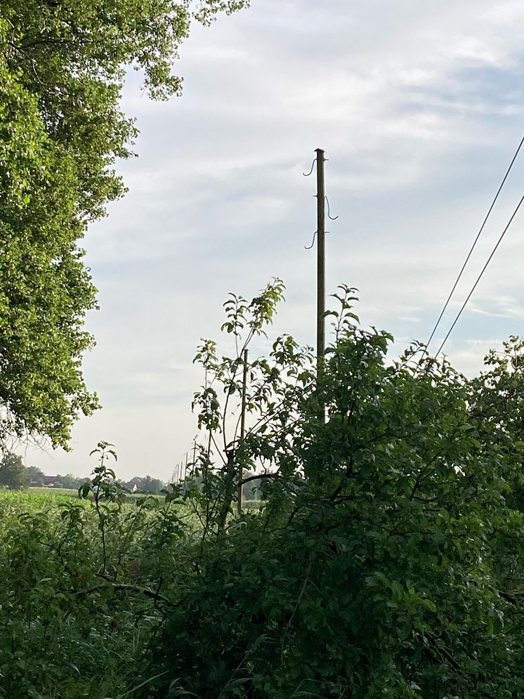 Durch umgestürzte Bäume beschädigte Mittelspannungsleitung in der Nähe von Achsheim im Landkreis Augsburg.