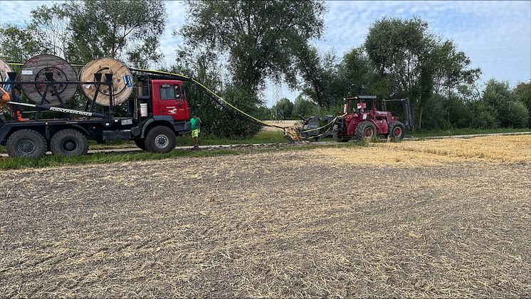 Verlegung eines 20kV-Mittelspannungskabels mit dem so genannten Pflugverfahren.