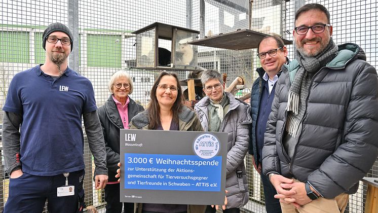Cedric Benedikt, Mitarbeiter LEW Verteilnetz, Marianne Schimmer, ATTis e.V., Sahra Scheffler, 1. Vorstand ATTiS e.V., Herta Bernhard, ATTiS e.V., Martin Glink, Geschäftsführer LEW Wasserkraft und Christian Bammel, Mitarbeiter LEW Wasserkraft (v.l.n.r.)