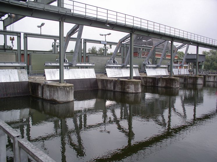 Große Rechen am Wasserkraftwerk filtern Treibgut aus den Flüssen