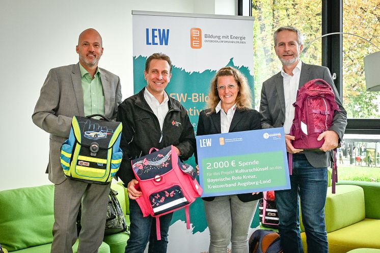 v.l.: LEW-Vorstand Christian Barr, Thomas Haugg, Kreisgeschäftsführer BRK Kreisverband Augsburg-Land, Maria Pfister, Projektleitung Kulturschlüssel Augsburg und Otto Bachmeier, Geschäftsführer des Caritasverbandes für die Stadt und den Landkreis Augsburg e.V.