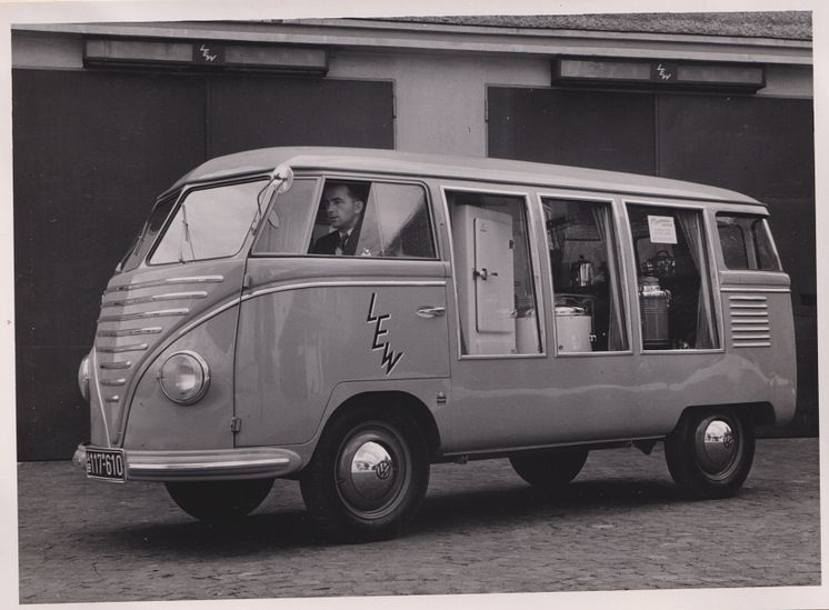 LEW-Busse zeigten in den 1950er Jahren auf Marktplätzen, wie man „elektrisch“ kocht.