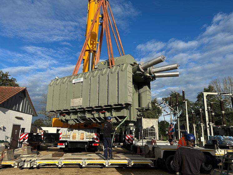 Der neue 110/20-kV-Transformator im Umspannwerk Wertingen stellt in Zukunft die Energieversorgung der Region sicher.