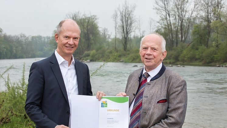Die Lechwerke (LEW) beteiligen sich bereits zum fünften Mal am Umwelt- und Klimapakt Bayern und engagieren sich aktiv für den Schutz der Umwelt, des Klimas und für eine nachhaltige Lebensweise. Die offizielle Übergabe der Urkunde durch Prof. Martin Grambow vom Bayerischen Staatsministerium für Umwelt und Verbraucherschutz erfolgte anlässlich des Abschlusses eines wegweisenden Umwelt- und Artenschutz-Projektes an der Iller.